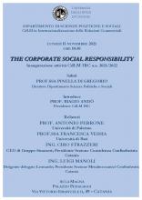 Giorno 15 novembre 2021 presso l’Aula magna del Dipartimento si terrà la presentazione del Corso di Laurea Magistrale in Internazionalizzazione delle relazioni commerciali. In questa occasione, verrà proposta una riflessione sul tema della responsabilità sociale d’impresa (corporate social responsibility). La discussione intreccerà analisi teorica e problemi della pratica ponendo a confronto esponenti dei mondi dell’Università (Antonio Perrone, Università di Palermo; Francesca Vessia, Università di Bari) e dell’impresa (Luigi Manoli, Dirigente delegato Leonardo; Ciro Strazzeri, CEO Gruppo Strazzeri).