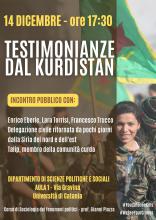 Nell'ambito del corso di Sociologia dei fenomeni politici del prof. Gianni Piazza, si terrà un incontro pubblico con gli attivisti catanesi di ritorno dalle aree a maggioranza curda della Siria del nord-est, dove l'esperimento rivoluzionario del Confederalismo Democratico, basato su democrazia partecipativa, pluralismo etcnico-religioso, emancipazione femminile, ecologia sociale e redistribuzione delle ricchezze, è pesantemente sotto l'attacco delle forze armate del governo turco. Interverranno anche membri della comunità curda a Catania.