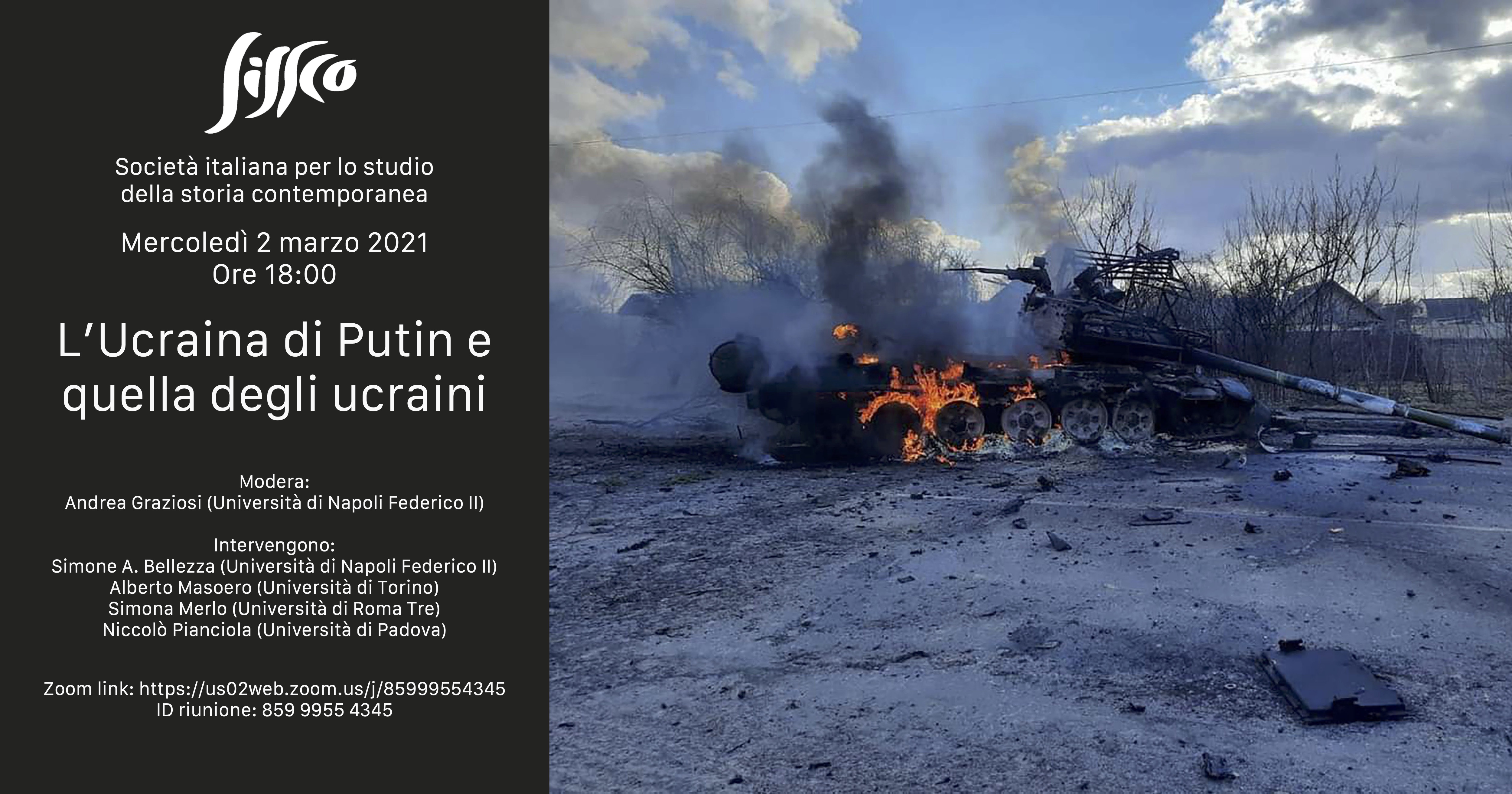 Il Dipartimento di Scienze Politiche e Sociali promuove l’iniziativa della Società Italiana per lo studio della Storia contemporanea (Sissco) di un webinar dal titolo L'Ucraina di Putin e quella degli ucraini, che si svolgerà su Zoom nel pomeriggio di mercoledì 2 marzo alle ore 18.