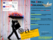 Lunedì 23 maggio, presso il Dipartimento di Scienze Politiche e Sociali (Aula 21 Marzo, Palazzo Pedagaggi), dalle 12:00 alle 14:00, si discuterà di "TRA CRISI e RESILIENZA. LA TRASFORMAZIONE DELLA PROFESSIONE GIORNALISTICA IN ITALIA E IN EUROPA". Introdurrà il seminario Rossana Sampugnaro, Coordinatore del Modulo Jean Monnet e interverranno Sergio Splendore, docente di Sociologia della Comunicazione presso l'Ateneo di Milano e autore (con Carlo Sorrentino) del libro Le vie del giornalismo. Come si raccontano i giornalisti italiani , e Alberto Cicero, Redattore del quotidiano "La Sicilia"