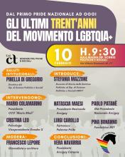 Sabato 10 febbraio alle 9:30 nell'aula magna del Dipartimento di Scienze politiche e sociali (Palazzo Pedagaggi), si svolge il convegno "Dal primo Pride nazionale ad oggi. Gli ultimi trent’anni del movimento LGBTQIA+ in Italia", ideato e pianificato dal comitato territoriale di Arcigay Catania a tre decenni dalla prima parata nazionale dell’orgoglio omosessuale, che, co-organizzata dal Circolo di Cultura omosessuale Mario Mieli e da Arcigay, vide confluire a Roma, il 2 luglio 1994, quasi 10.000 persone. Si discuterà su significato e ricadute di un evento, considerato a giusto titolo dal movimento LGBTQIA+ quale pietra miliare del proprio percorso di liberazione e rivendicazione.