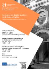 Il Colloquium Philosophy & Global Affairs vi invita a partecipare alla due lezioni che il Dr. Efe Can Özek (Europa-Universität Flensburg, Germany) terrà giorno 3 e 4 aprile 2024, dalle ore 12:00 alle 14.00, dal titolo rispettivamente “Immigration and Ethnic Diversity in the European Labour Market” e “Capitalism without Human Rights: A Global Threat to Democratic Capitalism?” presso il Dipartimento di Scienze Politiche e Sociali (Università di Catania), aula 6 - Polo Didattico, Via Gravina, 12. L’attività si svolge all’interno del programma di mobilità Erasmus+.