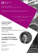 Quest'anno la relatrice sarà la prof.ssa Claartje Ter Hoeven (University Of Utrecht), che ci parlerà del lato nascosto dell'Intelligenza Artificiale, il cosiddetto Ghostwork.