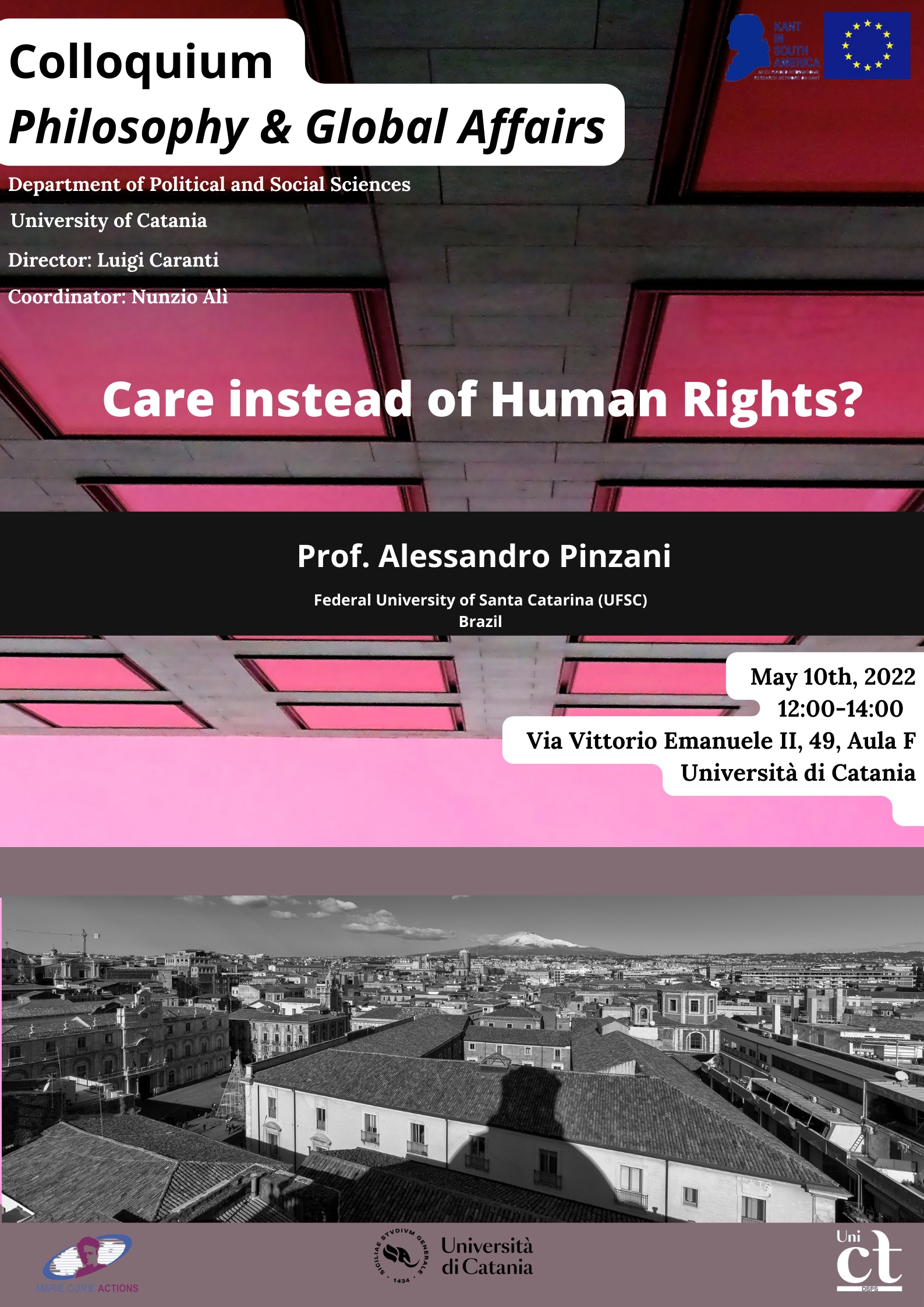 Il Colloquium Philosophy & Global Affairs vi invita a partecipare alle lezioni/seminari che il Prof. Alessandro Pinzani (Federal University of Santa Catarina - UFSC - Brazil) terrà nel mese di maggio in veste di visiting professor nell’ambito del progetto di interscambio (MSCA-RISE) “Kant In South America – KANTINSA”.