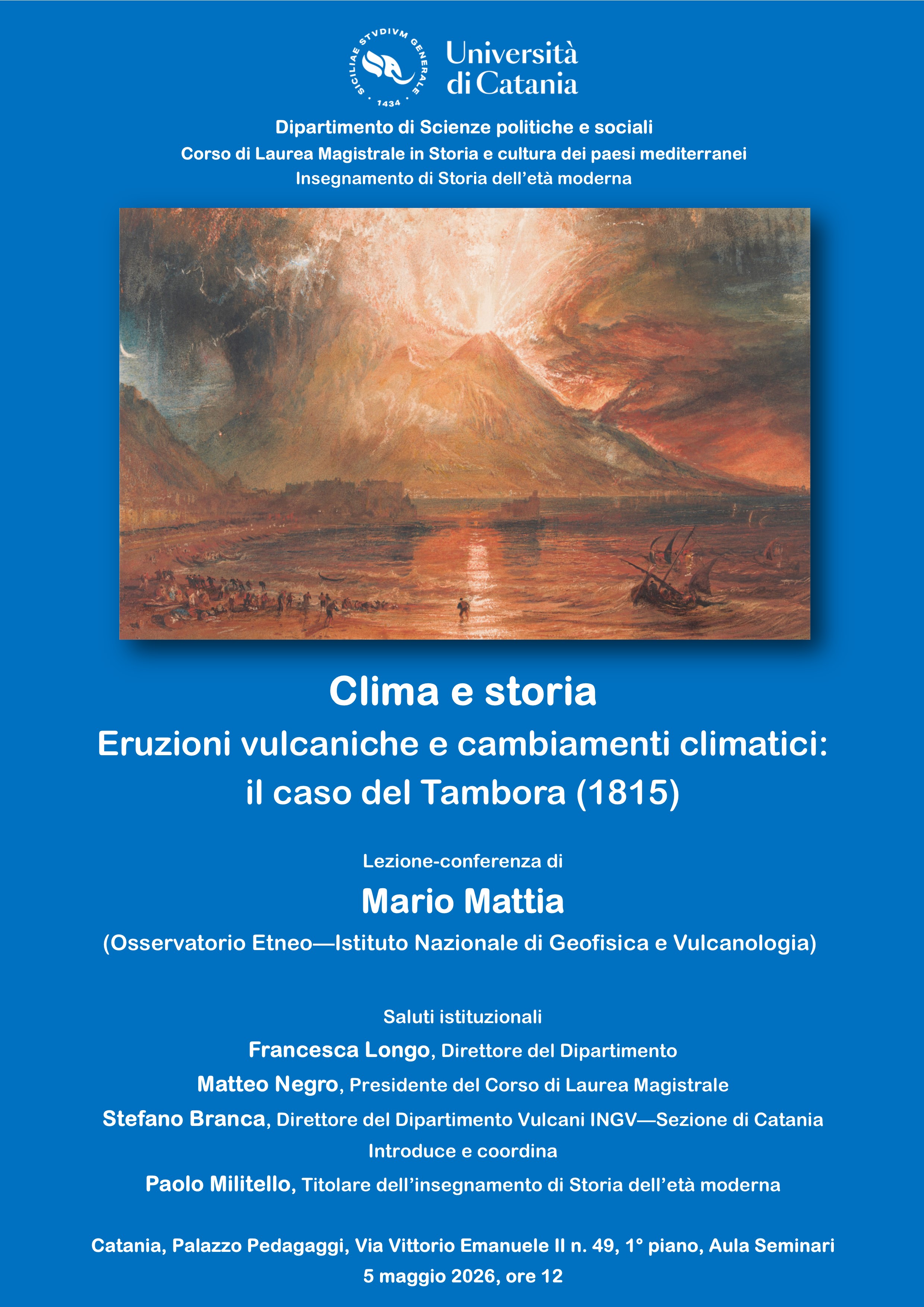 L’iniziativa si inserisce nell’àmbito della collaborazione tra l’INGV di Catania e la cattedra di Storia moderna del Dipartimento di Scienze politiche e sociali dell’Università di Catania.