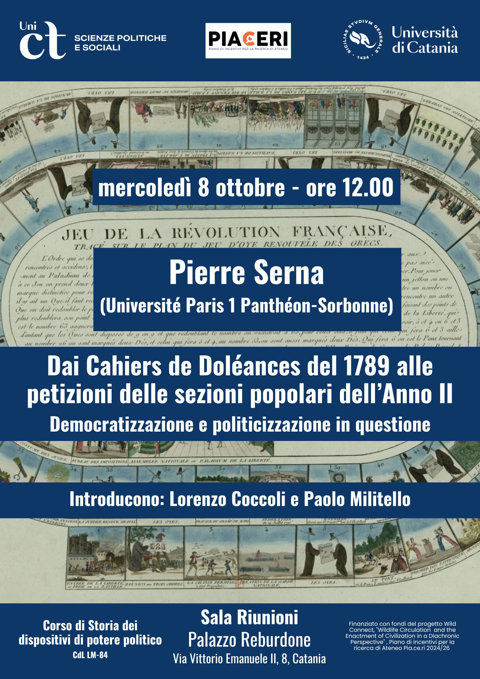 Seminario nell’ambito del corso di Storia dei dispositivi di potere politico, che si terrà l’8 ottobre in Sala Riunioni di Palazzo Reburdone, alle ore 12.00. Interverrà il prof. Pierre Serna della Università di Parigi-Sorbona, introdurranno i prof. Lorenzo Coccoli e Paolo Militello. L’evento è aperto alla partecipazione di studenti/esse e dottorandi/e del Dipartimento.