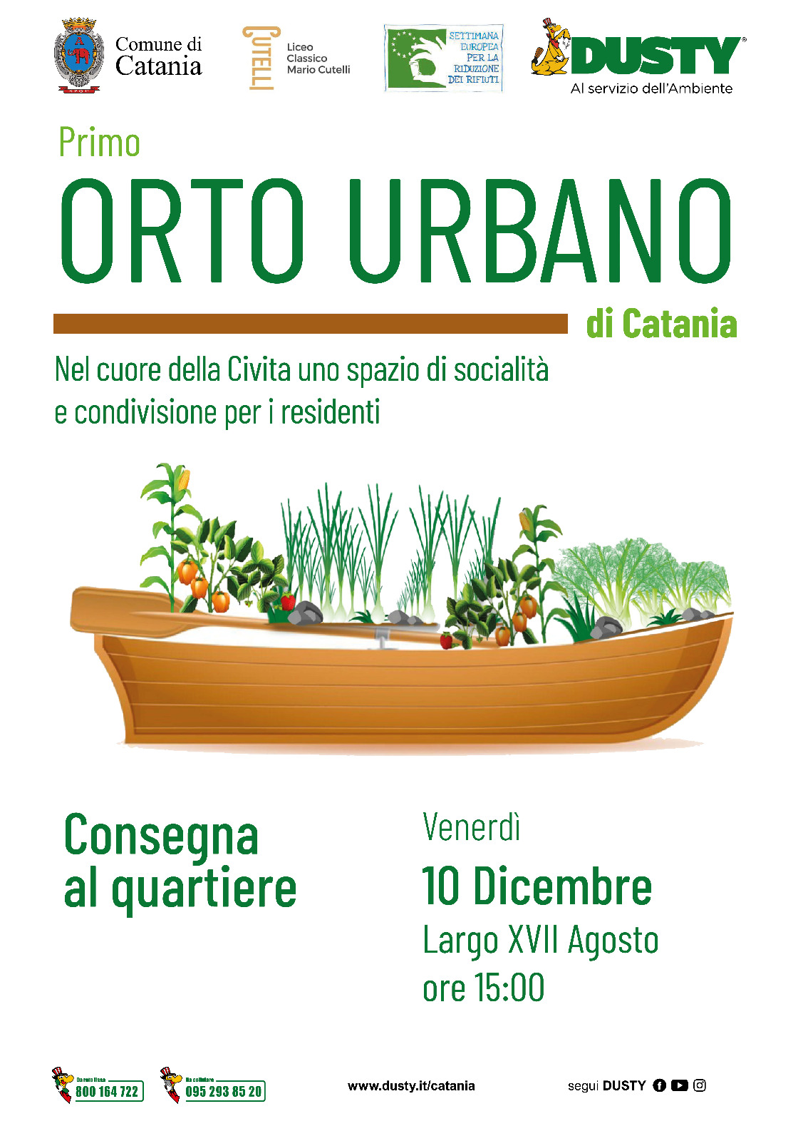 Una barca da pesca trasformata in una grande fioriera, cassoni angolari per coltivare in città piante e ortaggi biologici, “orto-panche” per socializzare, e spazi dedicati ai giochi per bimbi e all’attività fisica: ecco alcuni dettagli dell’orto urbano che Dusty donerà alla città di Catania, e in particolare ai residenti dello storico quartiere della Civita.