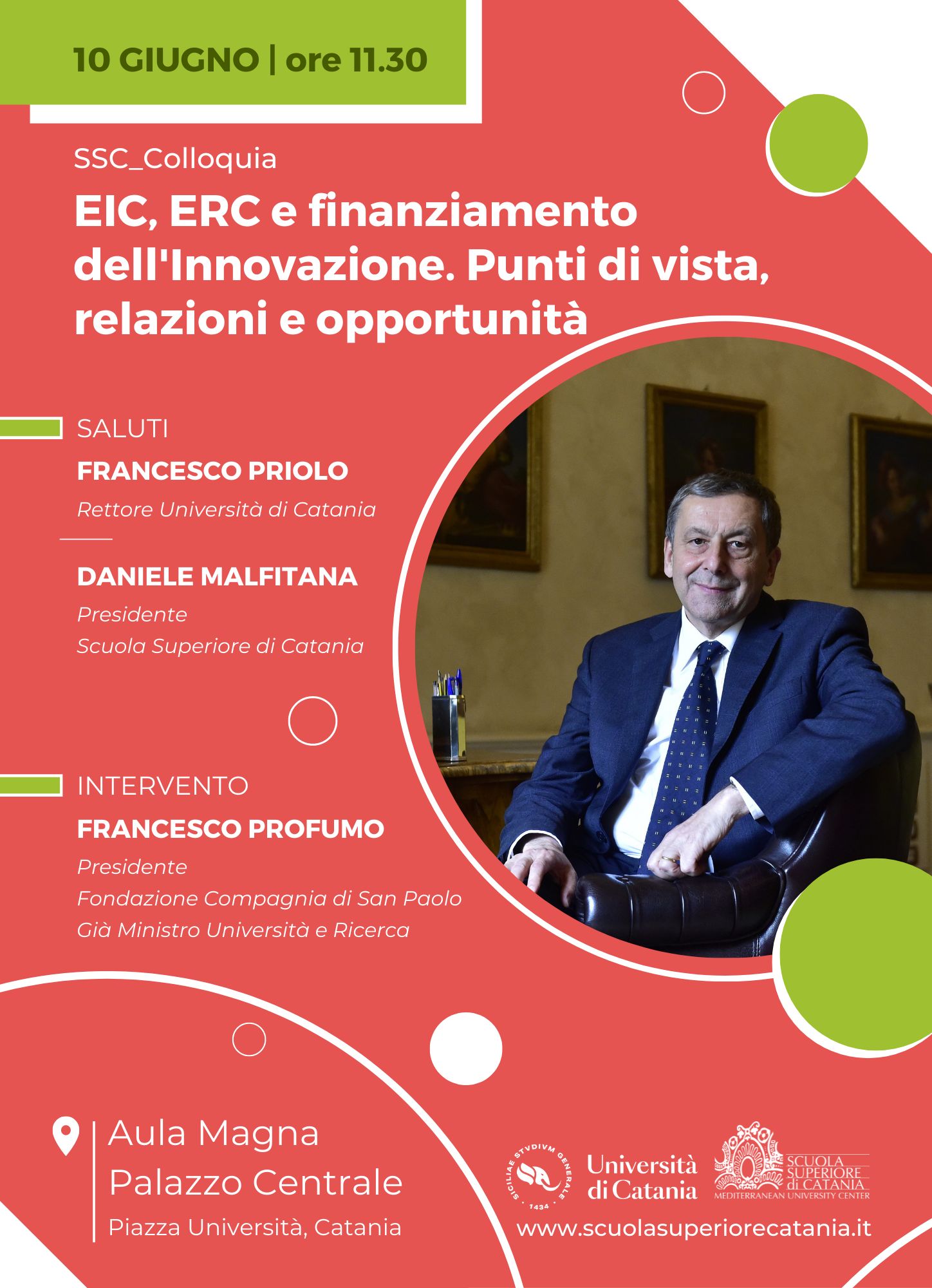 Per il ciclo SSC_Colloquia, Francesco Profumo, Presidente della Fondazione Compagnia di San Paolo, già Ministro Università e Ricerca, interviene sul tema "EIC, ERC e finanziamento dell'Innovazione. Punti di vista, relazioni e opportunità".
