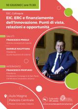 Francesco Profumo interviene sul tema "EIC, ERC e finanziamento dell'Innovazione. Punti di vista, relazioni e opportunità"