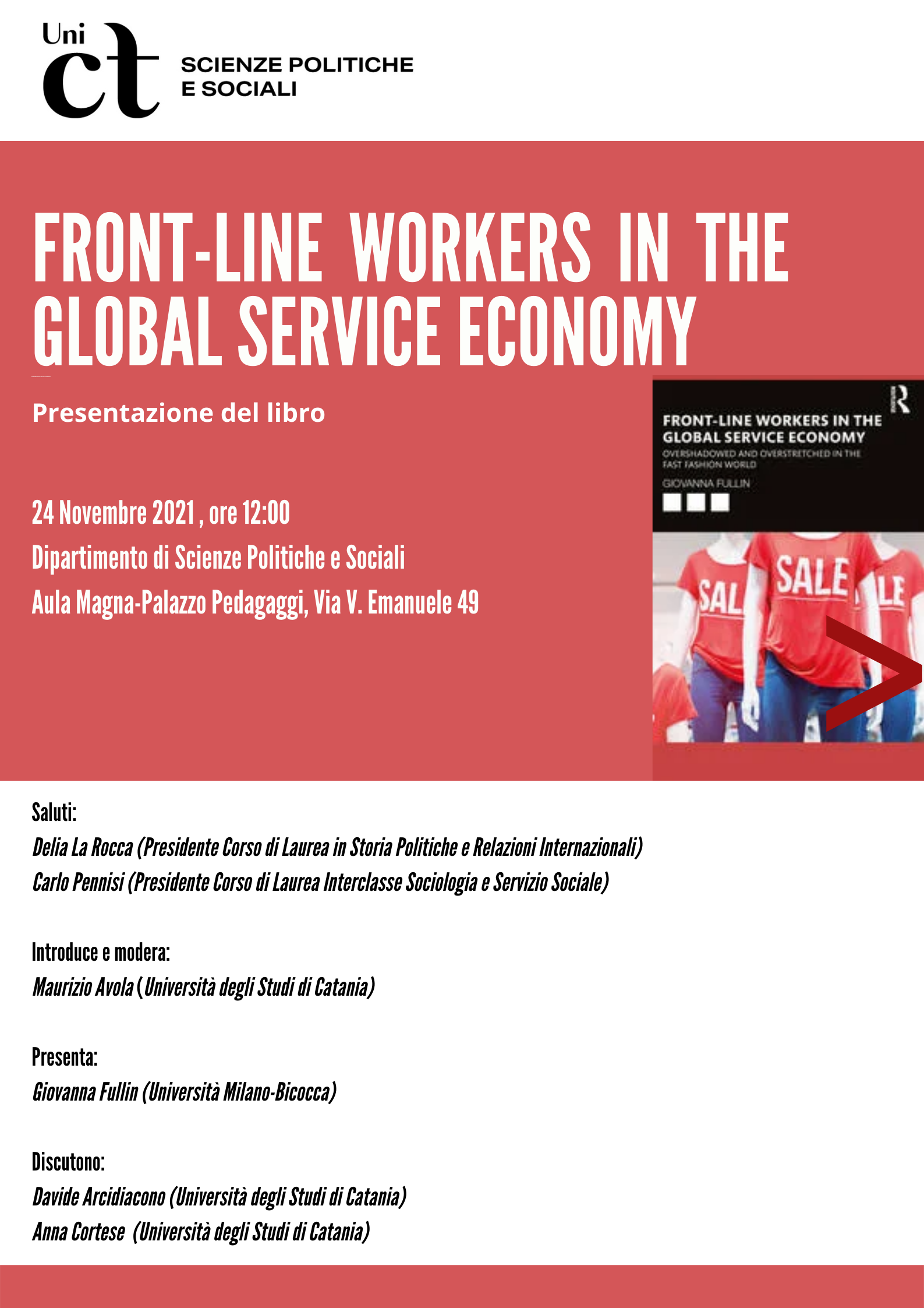 Si comincia giorno 24 Novembre alle ore 12 con la presentazione del libro "Front-Line Workers in the global Service Economy" (edito Routledge), di Giovanna Fullin (Università di Milano-Bicocca).
