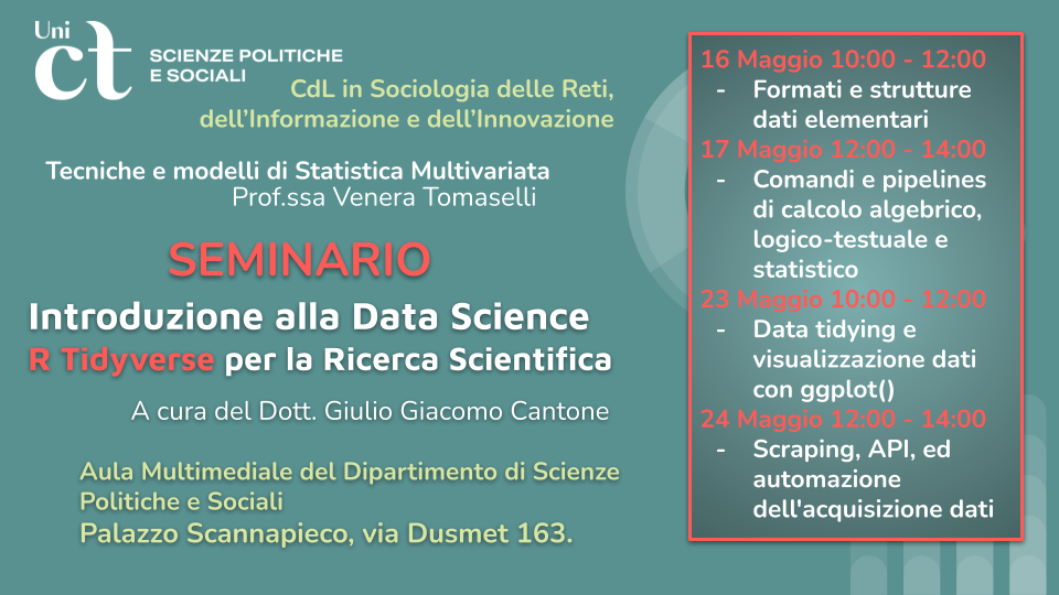 Introduzione alla Data Science - Tecniche e modelli di statistica multivariata: R Tidyverse per la Ricerca Scientifica