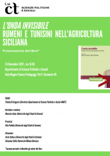 La seconda presentazione del ciclo avverrà giorno 24 Novembre alle ore 15:30 e riguarderà il libro "L'ONDA INVISIBILE. Rumeni e tunisini nell'agricoltura siciliana), a cura di Anna Cortese e Rita Palidda (Università degli Studi di Catania).