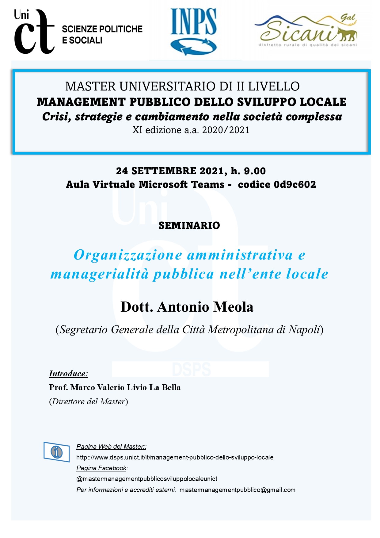 Management Pubblico dello Sviluppo Locale: Crisi, strategie e cambiamento nella società complessa XI edizione a.a. 2020/2021