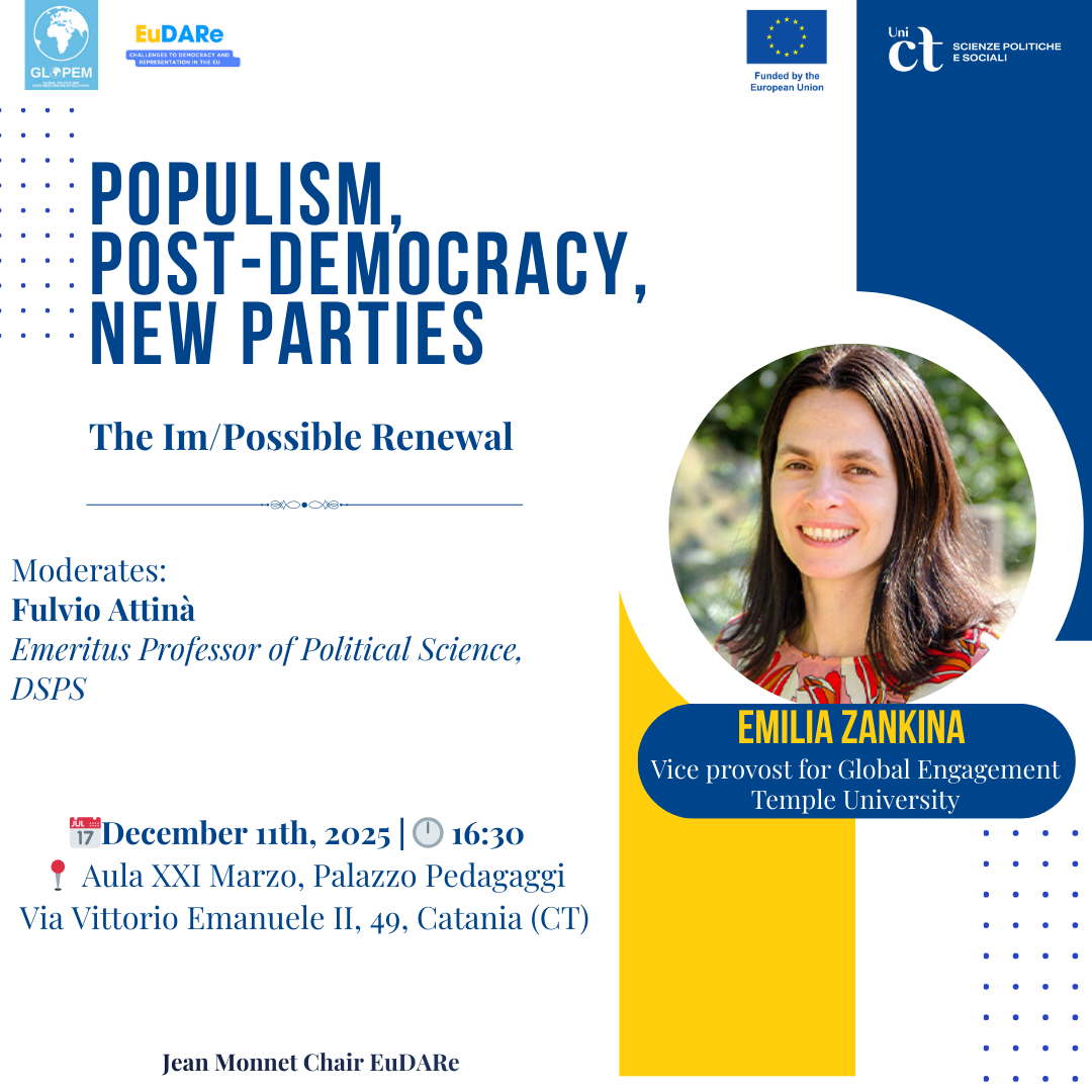 La professoressa Emilia Zankina professoressa di Scienze Politiche e Vice Rettrice per l’Impegno Globale presso Temple University discuterà l’evoluzione del populismo e dei nuovi partiti nelle democrazie.