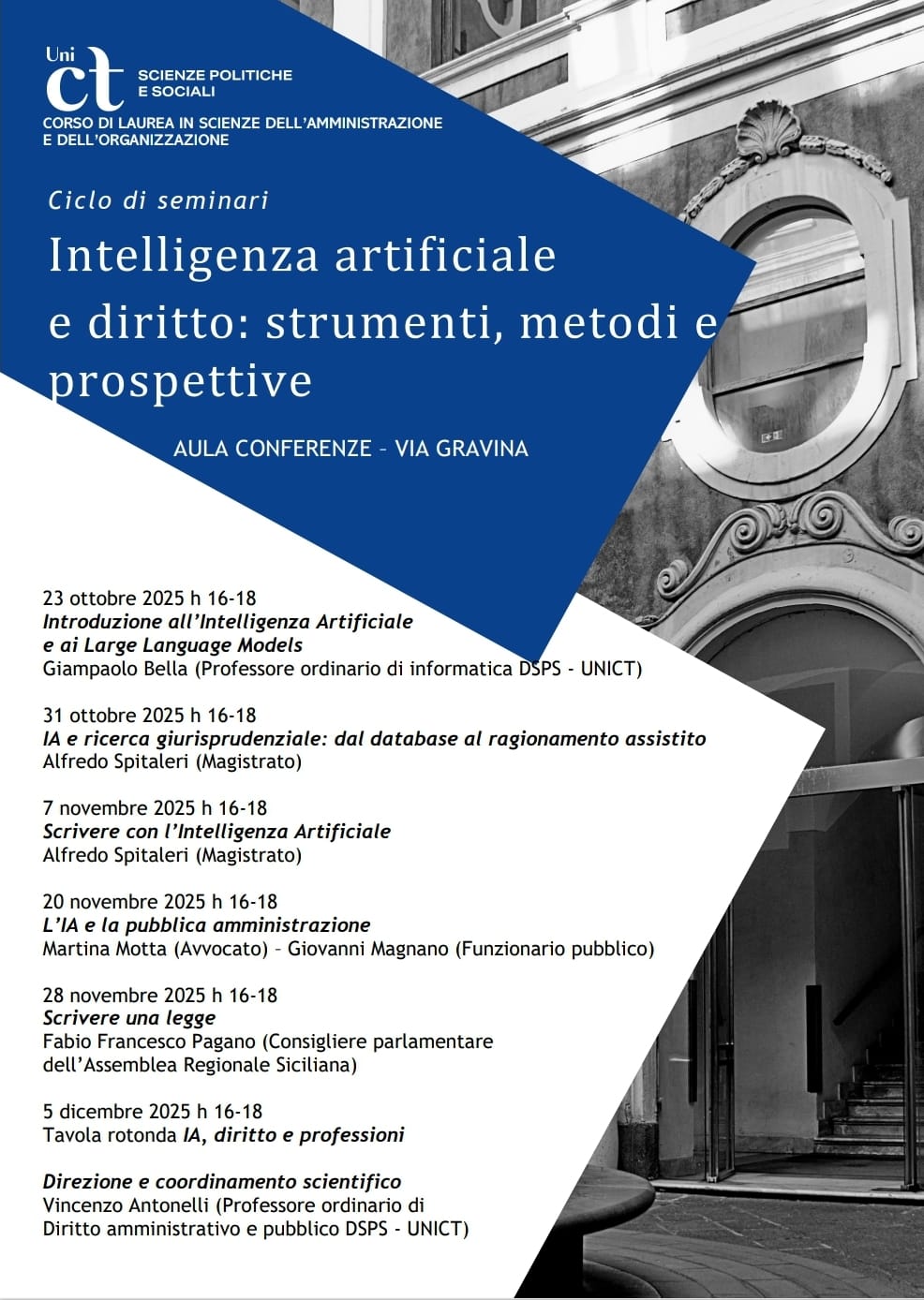 Il ciclo di seminari, sotto la direzione scientifica del prof. Vincenzo Antonelli, mira a offrire agli studenti universitari un percorso, progressivo e dialogato, che coniughi conoscenze teoriche, esercitazioni pratiche e confronto con il mondo delle professioni.